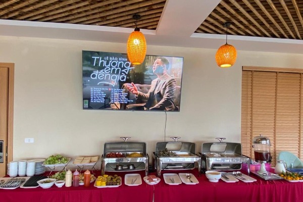 Buffet / set sáng; ăn tối tại nhà hàng hoặc gọi món theo thực đơn resort.