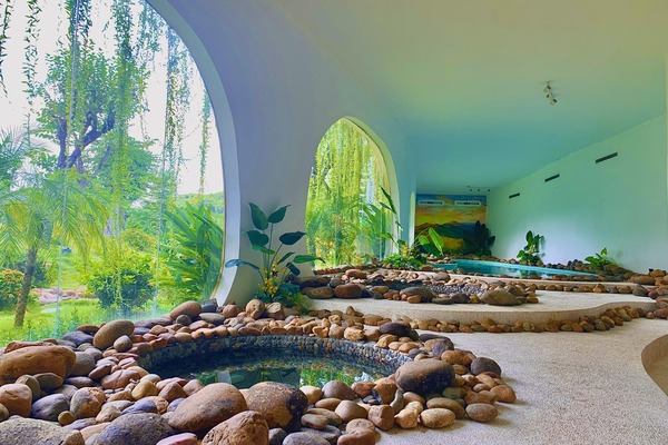 • Khuôn viên lớn, nhiều tiểu cảnh đẹp (bánh xe nước, hồ bơi vô cực…)